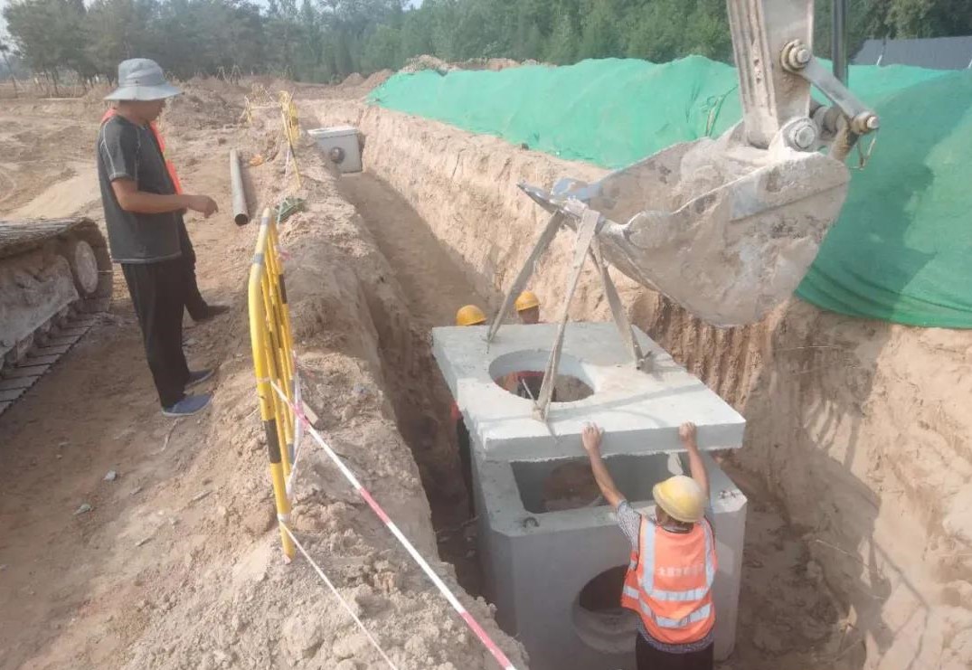 該工程包括道路工程、給排水工程、供熱工程、電氣及弱電工程等,涉及雨水、污水、給水等九種管線施工。施工前,項目部針對工程管線多,且各類管線的埋深及位置不同,因地制宜、提前規(guī)劃,安排施工人員第一時間摸清管線施工位置,做好分區(qū)域、分層次施工安排。施工中,項目部針對工程點多面廣的情況,將整個工地分為東西兩個工區(qū),安排四個施工隊分別負責(zé)各類管線施工,交叉利用機械進行倒替作業(yè),為后續(xù)施工贏得更多時間。同時,由于雙塔景區(qū)項目分九個標(biāo)段,周邊施工的兄弟單位眾多,管線及道路施工都與園林、古建等施工單位存在交叉施工的情況。項目部“兩手抓、雙推進”,一邊組織相關(guān)人員進行現(xiàn)場勘察,優(yōu)化施工方案;一邊積極與業(yè)主及周邊施工單位進行溝通協(xié)調(diào),合理確定機械、材料等進場時間,采取錯峰施工,最大化減小交叉施工影響,加快推動工程進展。