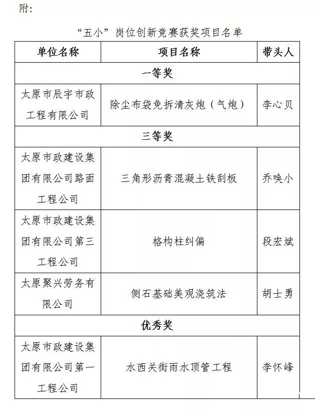另訊,集團(tuán)公司五項創(chuàng)新項目被市總工會評為“‘五小’崗位創(chuàng)新競賽獲獎項目”稱號。